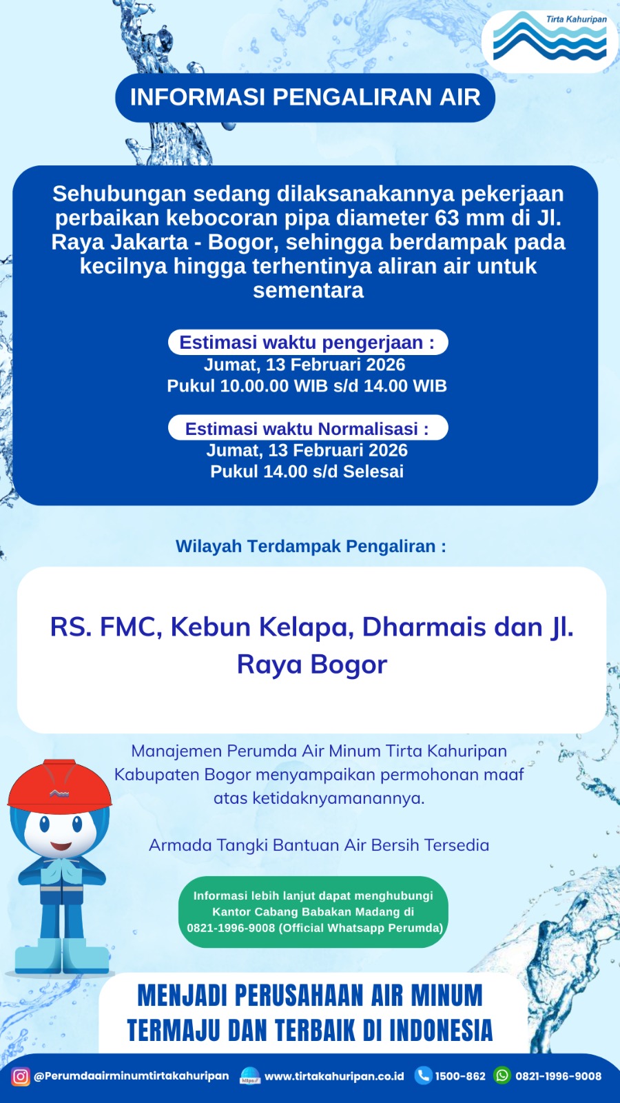 [CAB. CIBINONG] INFO PENGALIRAN AIR 13 FEBRUARI 20...
