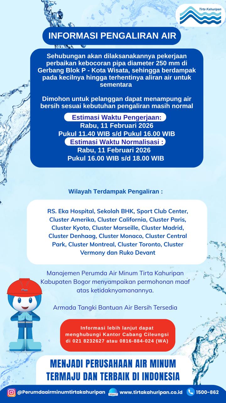 [CAB. CILEUNGSI] INFO PENGALIRAN AIR 11 FEBRUARI 2026