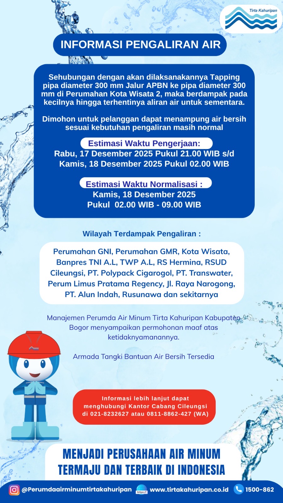 [CAB. CILEUNGSI] INFO PENGALIRAN AIR 17 DESEMBER 2025